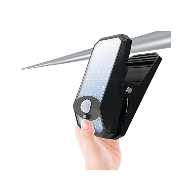 【どこにでも簡単設置】クリップみたいに挟むだけの簡単設置。太陽光で充電するソーラータイプで、電池不要。キャンプや釣りなどのアウトドアや、庭や玄関、駐車場の防犯用としても。必要な時、必要な場所へ明かりを持ち運べます。設置に工具が不要で付け替えもカンタン。【エコな太陽光発電】昼間はソーラーパネルで太陽光を効率的に充電、夜間は人感センサーで自動発光。ソーラーパネル一体型のスタイリッシュなクリップ式センサーライトで、ソーラーパネルとLEDが表裏構造なので、窓際で充電して、そのまま夜の室内を照らすことも可能です。