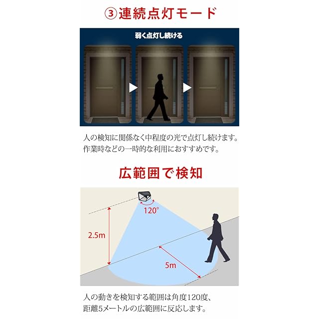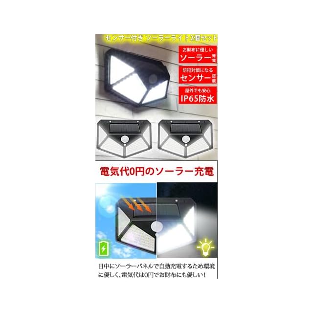 商品名:[ラドウェザー] ソーラーライト センサーライト 屋外 2個セット 防犯グッズ 防犯対策 ソーラーパネル 自動充電 人感センサー
