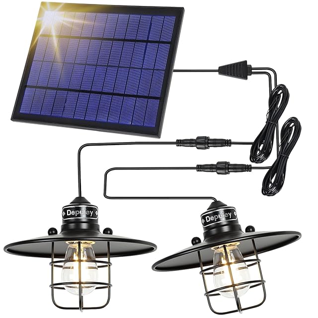 DINGLILED分離型2灯 LEDソーラーライトペンダントライト屋外 2000mAh電池容量 太陽光発電 センサーライト人感センサー 防犯ライト電球色 玄関灯 光センサー付き 夜間自動点灯 電気代不要 IP65防水 口金E26 玄関先/庭/駐車場/ガーデン等屋内外に適応(LED 電球付属)