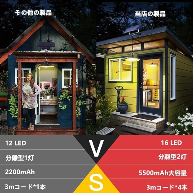 【分離型・屋外/屋内兼用・リモコン付き】弊社はソーラーライトの設計及び製造技術に専念して、最新版分離型2灯式ソーラーライトが公開します。ソーラーパネル部分とライト部分が分けているので、ソーラーパネルは日当たりの場所に設置して、2灯は違う照明場所に設置できます。リモコンが付いて、2灯は別々で点灯消灯の操作が可能です。