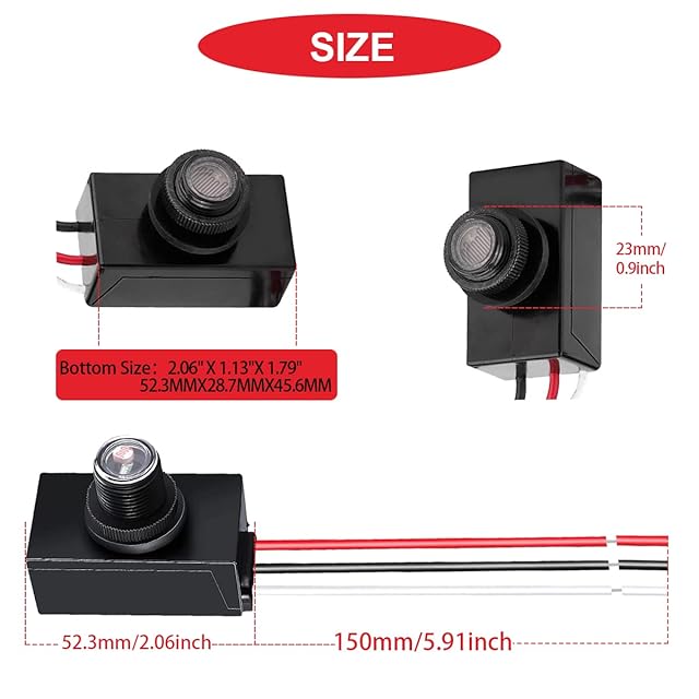 インテリジェント検出設計,この光センサーフォトセルは、夕暮れと夜明けに外部ライトをオンにし、周囲の照明レベルに応じて照明を自動的に制御します。 内部設計には、日中は自動的にオフになり、夜間はオンになる自動周囲光レベル検出回路があります