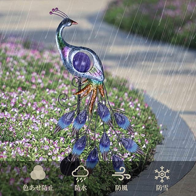 【多機能】夜間は、装飾的なソーラーライトが屋外空間に心地よい輝きを放ちます。 昼間は、古典的な孔雀の外観でお庭の装飾にリラックスした雰囲気を添えましょう。