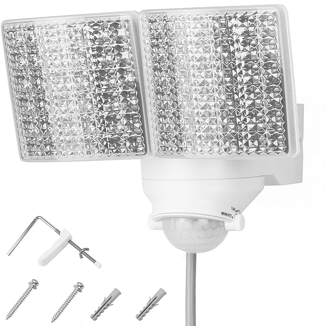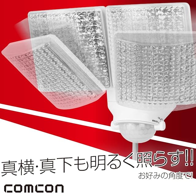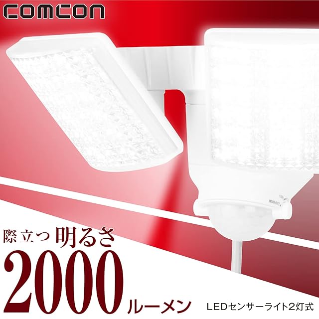 comcon センサーライト 2灯式 CLA-200 AC コンセント 100V LED 人感センサーライト 屋外 外 屋内 室内 防犯ライト ガレージ 庭 玄関灯 玄関 メ高輝度 エコ 節電 広範囲 投光器 防雨 センサーライト 屋外 ホワイト