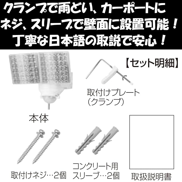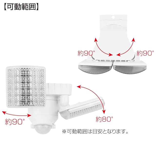 ●センサー探知エリア:約3m時約180度、約12m時約90度 ●点灯時間設定:常時点灯、約10秒~約5分