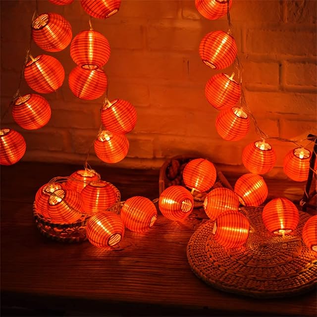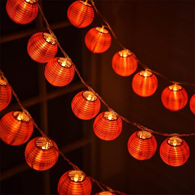 【きれいな装飾】提灯直径約7cm、5mと6.5m電球間距離15cm、7m電球間距離10cm。ご家庭やお店、キャンプ、広場やパーティ会場を綺麗に彩ります、お祭りなどを飾るには理想的なイルミネーションライトです。雰囲気作り用に最高。