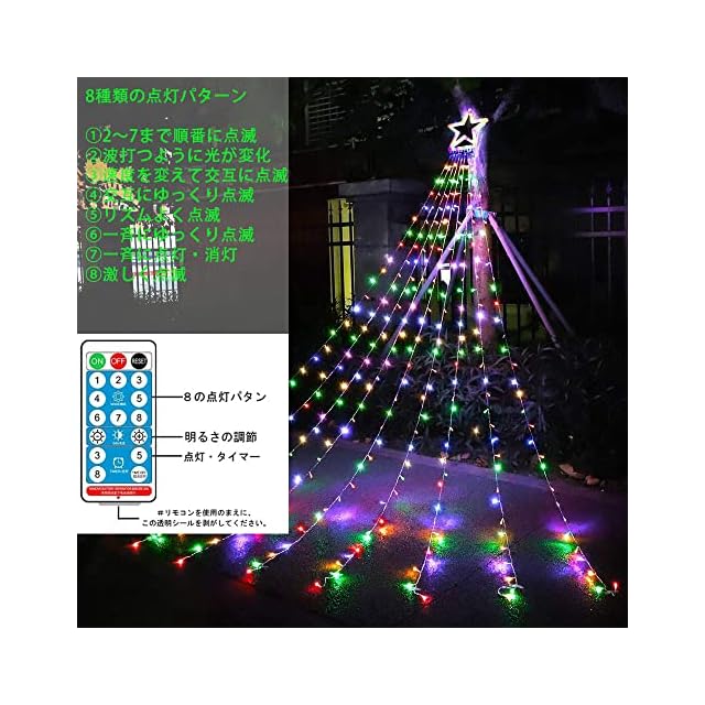 ★【8種類の点灯モード】全8種類の点灯モードがあります。連続変更、波状変更、点滅変更、ちらつき変更、急速変更、低速変更、ドリーム変更、固定点灯という8種類の光るパターンがあるイルミネーションライトです。ボタンを押すだけで、点灯モードを設定できます。暖色系のライトでロマンチックかつ癒しの雰囲気を作り出されます。