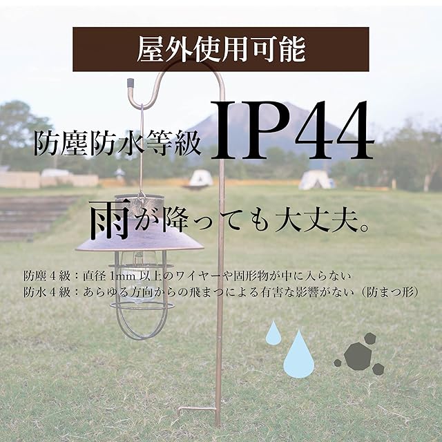 【防水・防塵】防水・防塵性能:IP44。1mm程度の外部の固形物の侵入を防ぎ、小雨などから防水します。屋外でもご使用いただけます。※IP44:ワイヤーなどからの保護で、いかなる方向からの水の飛沫によっても有害な影響を受けない。