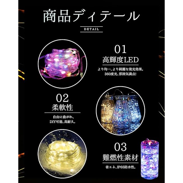 【IP65防水・安全で高品質】各ストランドは3本の高品質のワイヤーで構成されており、丈夫で防水防塵、絶縁されているので加熱しません、長時間仕様した後でも火傷の危険なし、触れても安全です。