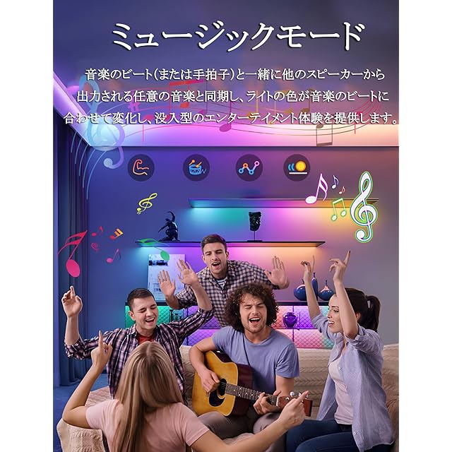 【アプリコントロール・リモコン操作】アプリでモード/色の選択、切り替えができます。さまざまなモードシーンを設定することもできます。スマホアプリでどこでも自由にコントロールできるので大変便利です。