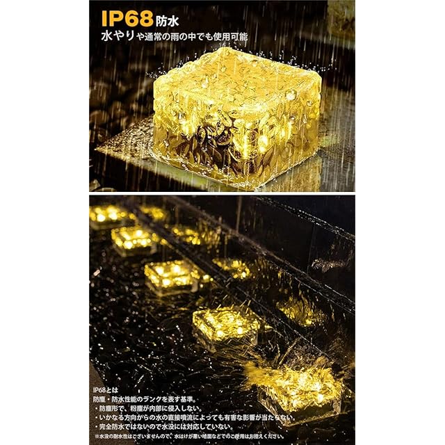☔「IP68防水、耐久性と耐候性」IP68防水性を持って、雨や湿気、さらには水中でも安全に使用できます。庭園やプールサイド、池や湖畔など、さまざまな屋外環境に適した照明となります。水没しても機能を維持できるため、水辺の照明としても理想的です。メンテナンスの簡素化:防水性が高いため、ソーラーガーデンライトのメンテナンスが容易になります。雨や水にさらされても問題なく機能するため、頻繁な点検や手入れの必要性が低減します。