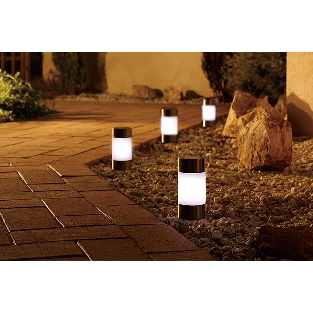 電気代0円。太陽エネルギーで充電して、暗くなると自動点灯。ライトとソーラーパネルの一体型。面倒な配線不要で、地面に挿し込むだけの楽々設置。アプローチの誘導灯にも。やさしいほのかな光が、夜のお庭を幻想的な雰囲気にしてくれます。お庭や通路に差して使える4個組。