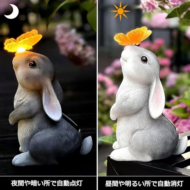 【愛らしいラビット】日中に自動的に太陽光を集めて、内蔵電池に蓄電しており、電気代がかかりません。表面には保護コーティングを備えて、雨や雪、直射日光ても心配ありません。樹脂も健康で環境に優しい材料であり、環境に優しいです。