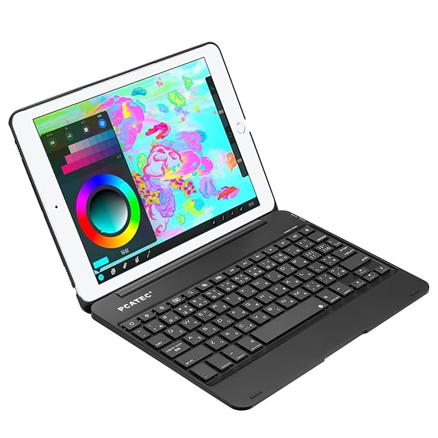 ピーシーエーテック iPad9.7 (2018第6世代) / iPad 9.7 (2017第5世代) / iPad air 専用 Bluetooth キーボードケースPCカバー Macbookに変身 日本語かな入力対応 (ブラック)
