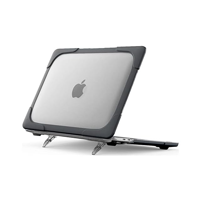 ProCase MacBook Pro 13 ケース 2022 2020、M1 A2338・A2289・A2251用 機甲風 アーマーケース、耐衝撃 ハードシェル 保護カバー 折りたたみ式スタンド、適用機種:MacBook Pro M1 13"/ MacBook Pro 13" Retina with Touch ID -ブラック