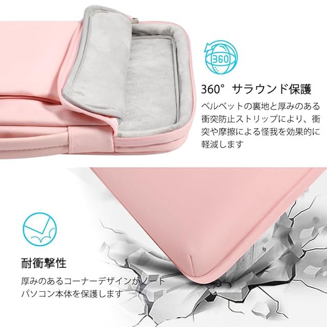 ❰360°保護❱:パソコンケース内側の厚みのあるふわふわしたクッションは衝撃吸収に優れています。ジッパーの周りにも保護パッドあり、傷を防止して大切なノートパソコンをしっかりと保護します。