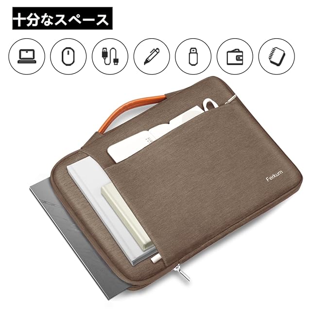 [Ferkurn] パソコンケース PCケース 手提付き 360°保護 ノートパソコンケース pcバッグ 撥水加工タブレット ケース MacBook Air/Pro/iPad/Surface/Chromebook シリーズ/Asus/Lenovo/レノボ/Dell/レッツノート/HP/NEC/Dynabook/Acer/富士通 対応 パソコンカバー 13 13.3 13.5インチ 茶