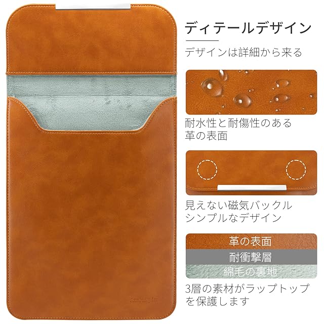 [PU皮革]:外層は防水皮革で、内部は整然としている毛绒の裏地で、効果的にあなたのノートパソコンがすりむいたり、水に濡れたりするのを避けることができます。