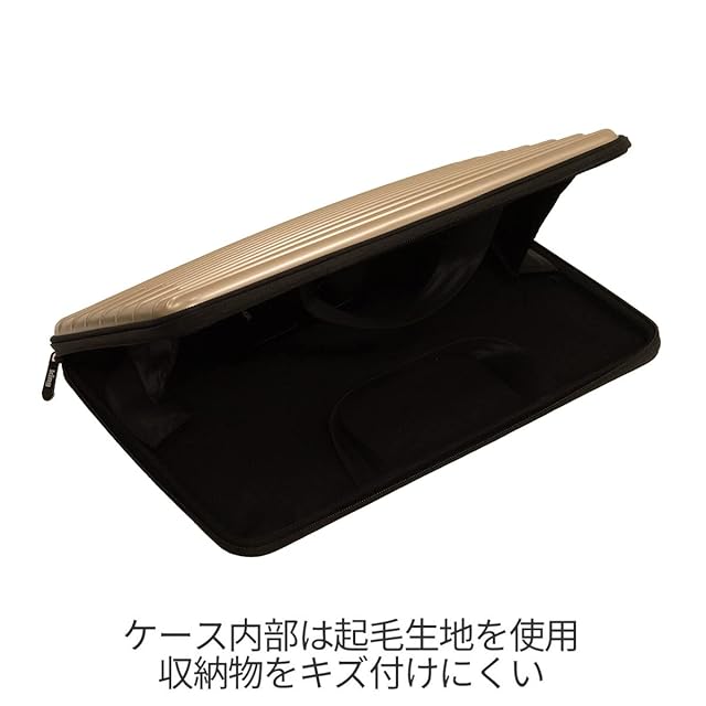 ケース内部には、収納物をキズ付けにくい起毛生地を使用しています。