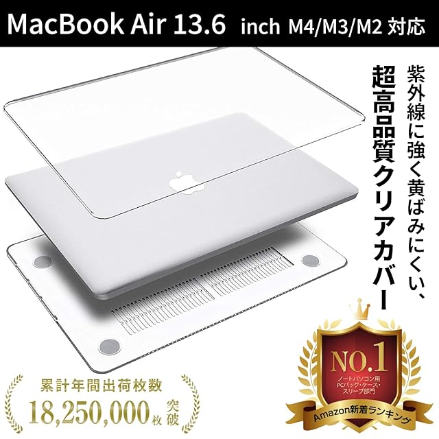 HOGOTECH ケース【MacBook Air 13インチ M4 M3 M2用】2025 2024 2022 カバー クリアカバー A3113 A2681