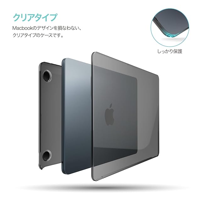 【クリアタイプ】… Macbookのデザインを損なわない、クリアタイプのケースです。