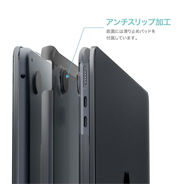 【製品特徴】… ◆ 背面アップルマーク : 透けて見える ◆ キーボードカバー : なし ◆ 底面滑り止めパッド : あり ◆ 排熱ホール : あり