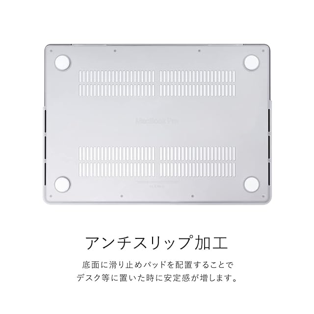 【製品特徴】… ◆ 背面アップルマーク : レインボー:見えない オーロラ:透けて見える ◆ キーボードカバー : なし ◆ 底面滑り止めパッド : あり ◆ 排熱ホール : あり ◆ 装着したままケーブル接続 : 可能