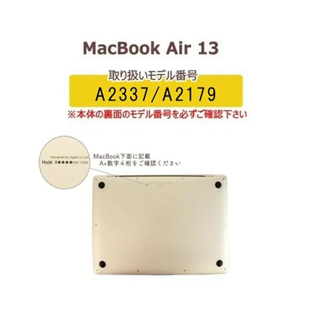 * 【対応機種】必ずご注文前に、MacBookの底面に記載されている対応機種のモデル番号(A2179 / A2337)をご確認ください。※Appleロゴ部分はくり抜けれるようになっています。