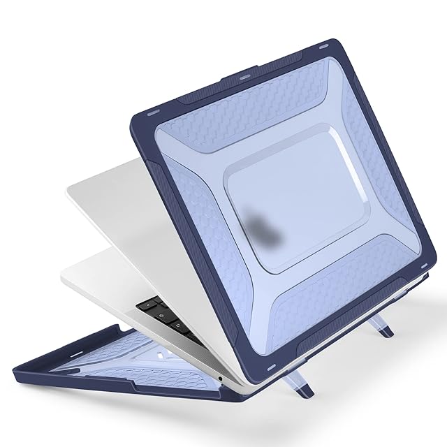 Batianda M2 MacBook Air 13.6インチ2022版A 2681モデルのパソコンケース、ハニカム型保護ハードケース、TPUバンパー+折りたたみブラケット+キーボードカバー+スクリーンプロテクタ付き、青
