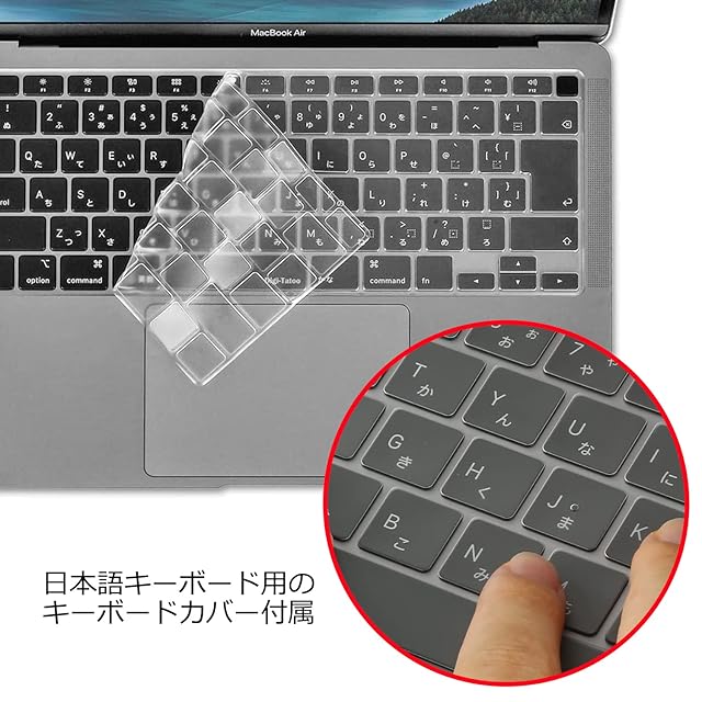 【日本語キーボード用のキーボードカバー付属】汚れや油、指紋を防止し、水洗いできます。Macbook Airを外側から内側まで保護します。(注:本Macbook Airキーボードシールは、日本語キーボード用で、英語キーボードには適用されません。)