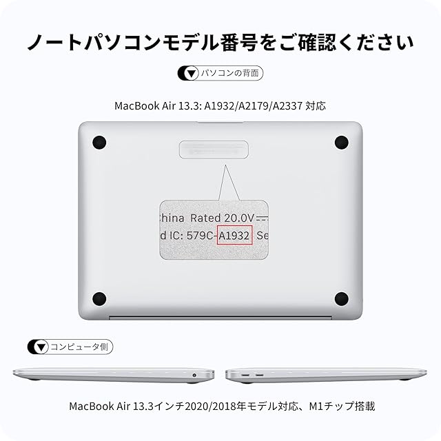 【対応機種】MacBook Air 13.3インチ用 2018-2020モデル対応。 モデル番号:A1932/A2179/A2337対応 (注意:MacBook Air M3/M2 チップモデルには対応しておりませんのでご注意ください。Model番号はMacBookの底面に記載されています。)