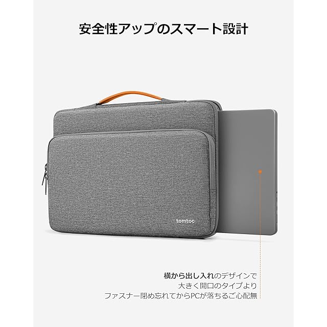 [tomtoc] 360°保護 11.6-13.8インチ パソコンケース 13インチ MacBook Air M4-M1 2025-2018 / 13 MacBook Pro M2 M1 2023-2016 / 13 iPad Pro iPad Air対応 ノートパソコンケース PCバッグ ブリーフケース 撥水加工 耐衝撃 通勤 通学 就活 アッシュグレー