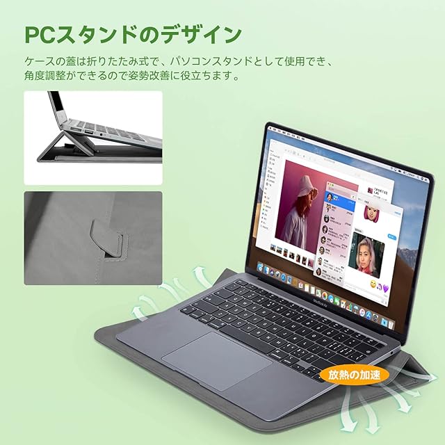 【PCスタンド】ケースの蓋は折り畳み式で、パソコンスタンドとしても使えます、角度が調整でき、姿勢の改善に役立ちます。また、パソコンバッグはマウスパッドとしても使用できるため、実用性がさらに向上しています。