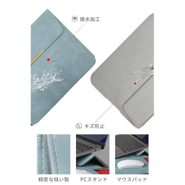 【撥水加工】商品の表面は水が浸透しにくい材質を採用し、水が付けても、簡単に拭き取れます。PU製とマット生地の二種類があり、優しい手触り感を提供します。裏側は繊細な布で、パソコンを優しく保護できます。