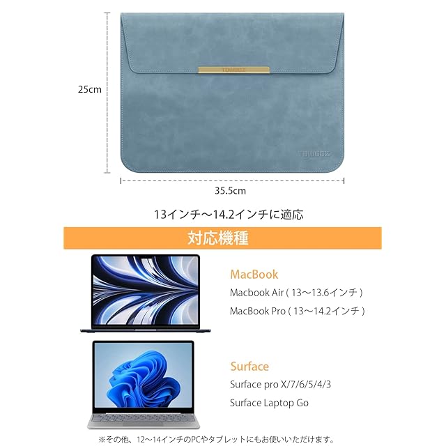 【対応機種】市販された13インチから14インチのパソコンに対応可能。13-13.6 インチ Macbook Air 2010-2024 M1 / M2 /M3 チップス: (A3113 / A2681 / A1369 / A1466 / A2337 / A2179 / A1932); @13-14インチ Macbook Pro 2008-2024 M1/ M2/ M3チップス: (A2159 / A1989 / A1425 / A1502 / A1278 / A1706 / A1708 / A2251 / A2338 / A2442/ A2918 / A2992 / A2779) Macbook底面のMode番号をご確認の上お買い求めください。ご注意:本製品は薄型のため、透明なプラスチックケースとの併用には適しません。