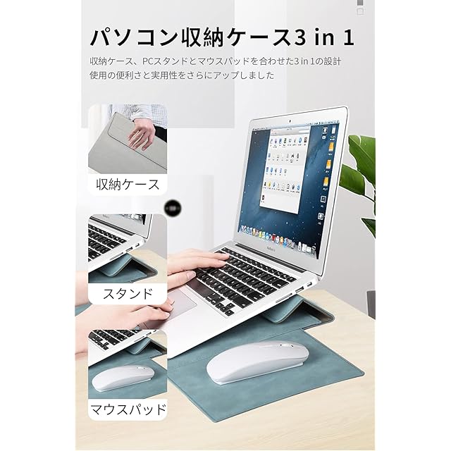 【保護ケース・PCスタンド・マウスパッド】厚手の生地と柔らかい毛織地で適度な硬さを再現し、傷防止や衝撃吸収性に優れています。不意な落下や衝撃を吸収し、ラップトップが傷つかないように保護します。ケースの蓋は折り畳み式で、パソコンスタンドとしても使えます、角度が調整でき、姿勢の改善に役立ちます。さらにマウスパッド付きの設計より実用性をさらにアップしました。