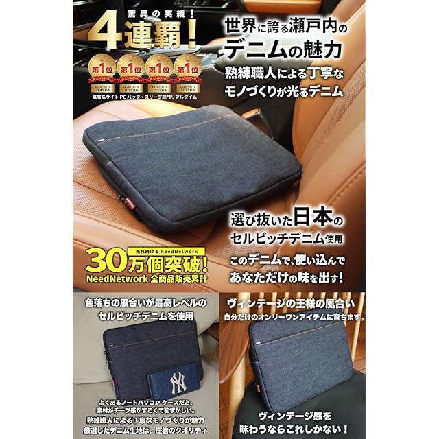 [ニードネットワーク] 日本が誇るデニム PCケース 耐衝撃 13.3インチ 旧型 MacBook Air/MacBook Pro 13 2012-2015 / 13.5インチ Surface Book / 13.5" Surface Laptop 向け ノートパソコンケース スリーブ 13-13.3インチ PCインナーバッグ タブレットPCケース PCバッグ