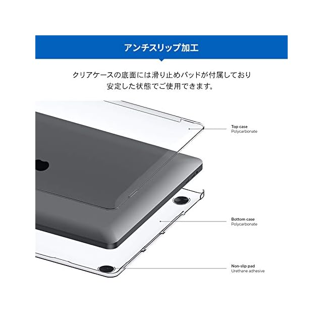【製品特徴】 ◆ 背面アップルマーク : 見える ◆ キーボードカバー : なし ◆ 底面滑り止めパッド : あり ◆ 排熱ホール : あり(底面サイドのみ) ◆ ご注意:MacBook Pro (M3 Pro, M3 Max) には対応していません。