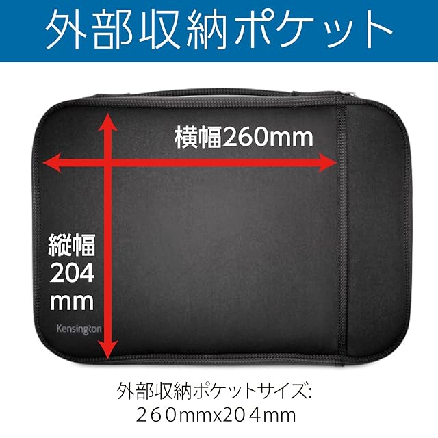 外部収納ポケット:チャージャー、イヤフォン、ワイヤレスマウス、モバイルトラックボールなどのアクセサリーの持ち運びに便利な外部ポケット付。 デバイスと一緒に持ち運び外出先や出張先でもノートPCやタブレットを便利に使用でき生産性を高めます。 (ポケットサイズ:W 260mm x D 220mm)