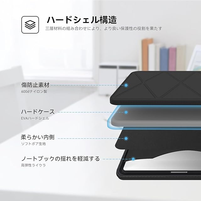 【耐衝撃】EVAハードシェルで、ラップトップを外部の衝撃から保護します。この保護スリーブにはパッドが装備されており、重量を増やさずにラップトップを360°保護します。 引っかき傷、へこみ、衝撃から全方位に保護します