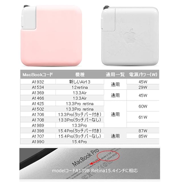商品名:MacBook Pro 13inch/13retina アダプター 保護ケース カバー シリコン素材 【完璧に保護 液体シリコン加工】 充電に干渉しない 落下 衝撃 吸収 (対応機種図表あり) ピンク