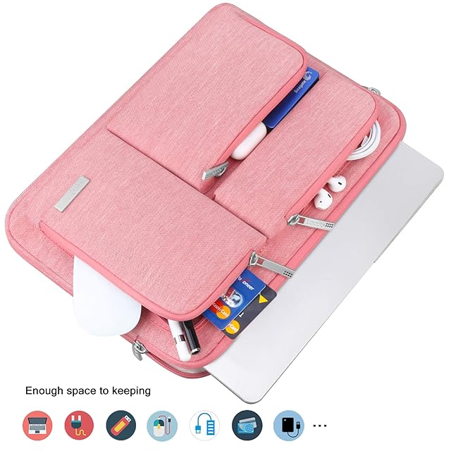 Lacdo 360° 保護ラップトップスリーブケース 対応機種 13インチ 新しい MacBook Air M4 A3240 2025, M3 A3113, M2 A2681, M1 A2337|13インチ MacBook Pro M2/M1 A2338 A2251|13インチ iPad Air M3 / iPad Pro M4 コンピュータバッグ、桃