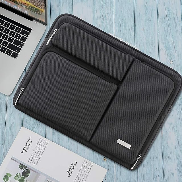Lacdo 360°保護ラップトップスリーブケース 用 15インチ 新しい MacBook Air M4 A3241 2025, M3 A3114, M2 A2941 2024-2023, 15インチMacBook Pro A1990 A1707, Dell XPS 15 Plus コンピュータバッグ アクセサリーポケット付き、ブラック