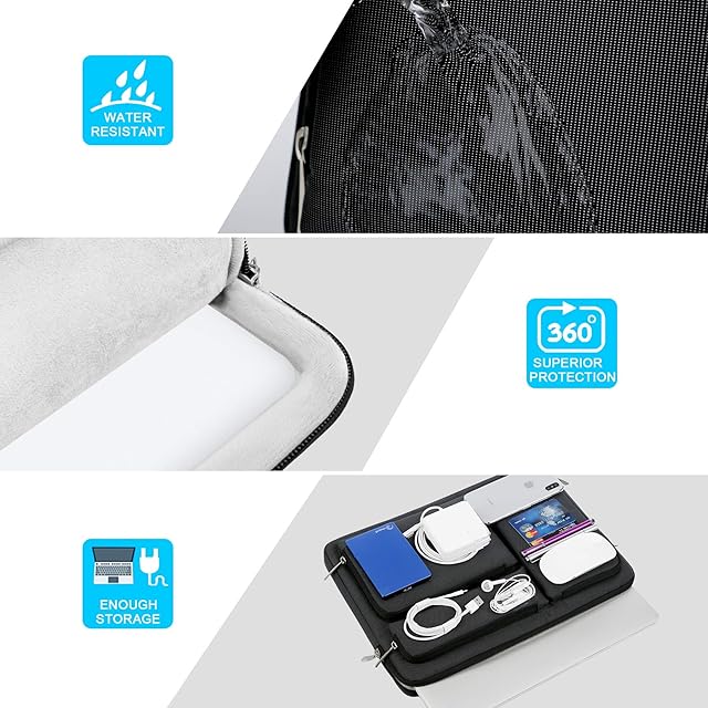 プレミアムプロテクション:コーナーアーマーデザインのソフトショックプルーフライニング:360°のオールラウンドプロテクションを提供! 適切なクッションが衝撃を軽減および吸収し、毎日の衝突、落下、衝突からラップトップを保護します。 耐久性と防滴性のあるキャンバス生地:水や雨のしぶきでデバイスが濡れる心配はありません。