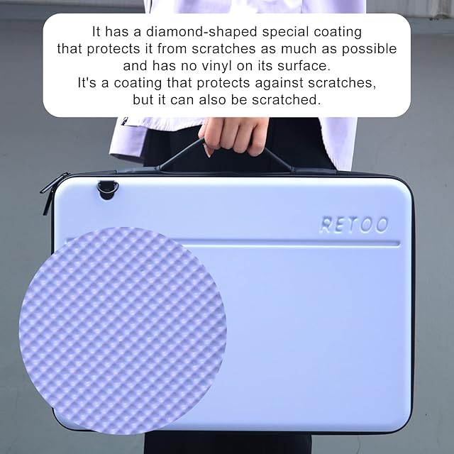【保護力抜群】スクラッチが最大限生じないよう保護してくれるダイヤモンド模様の特殊コーティングが施されており、表面にはビニールが付いていません。(スクラッチが少ないように報告するコーティングですが、完璧に保護して頂けません。)また内側は柔らかな肌触りの極細糸生地で仕上げています。 ノートパソコンを収納する右側の空間にはエンボスマイクロファイバーで外部衝撃をもう一度吸収してくれます。中身同士が擦れるのを防ぐ仕切りに実用性を加え、マウスパッドとして活用できます。
