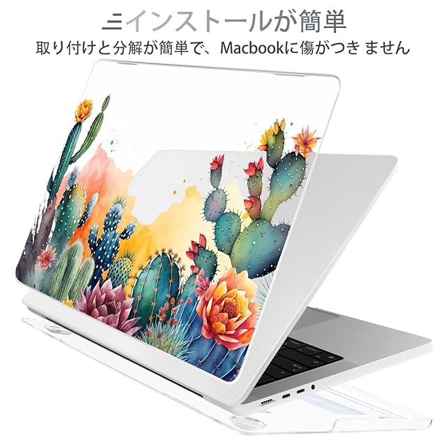 商品名:Batianda 14インチMacBook Pro M3/M2/M1チップ保護ケース A2442/A2779/A2918/A2992 対応、軽量、排気口 マックブック シェルカバー + 液晶保護フィルム + JIS配列キーボードカバー 保護カバー、きれいなサボテン