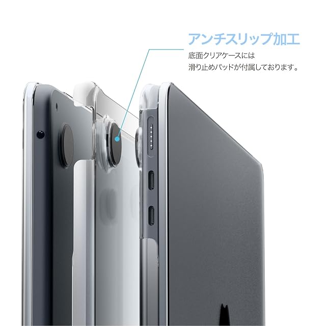 【アンチスリップ加工】… 底面クリアケースには滑り止めパッドが付属しております。