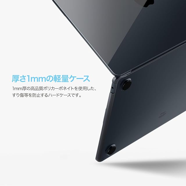 <b>◆ 厚さ1mmの軽量ケース</b><BR><BR>1mm厚の高品質ポリカーボネイトを使用した、すり傷等を防止するハードケースです。<BR><BR><BR><b>◆高透明度のクリアケース</b><BR><BR>クリアポリカーボネイトを使用した、Macbookのデザインを損なわないフルカバーハードケースです。<BR><BR><BR><b>◆アンチスリップ加工</b><BR><BR>底面クリアケースには滑り止めパッドが付属しております。<BR><BR><BR><b>◆フルオープン仕様</b><BR><BR>画面を好きな角度に調整することができます。<BR><BR><BR><b>◆装着したままケーブル接続可能</b><BR><BR>ケースを装着したまま、ケーブル接続等、すべてのアクセスが可能です。