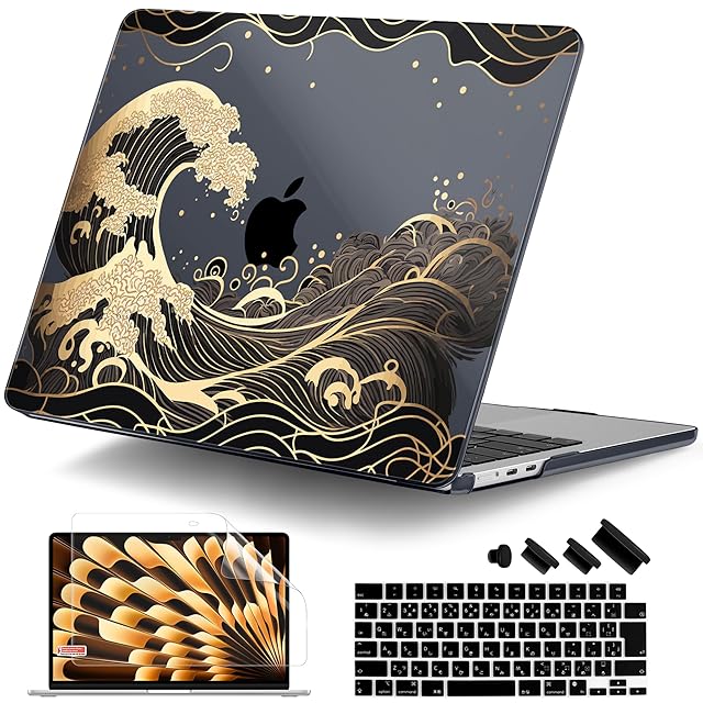 Batianda MacBook Air 15インチケースM2チップ新型2023、保護プラスチックハードケース+キーボードカバー+スクリーンプロテクタ、専用モデルA2941、きんそく波