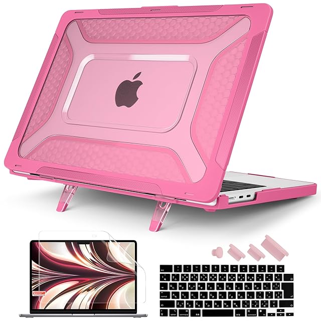 商品名:Batianda M2 MacBook Air 13.6インチ2022版A 2681モデルのパソコンケース、ハニカム型保護ハードケース、TPUバンパー+折りたたみブラケット+キーボードカバー+スクリーンプロテクタ付き、ローズレッド