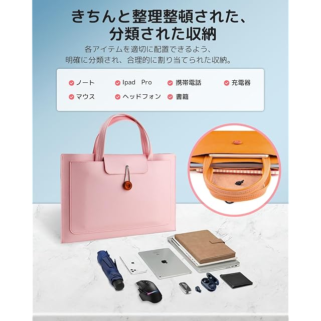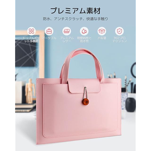 パソコンケース 13 13.3 14インチ 360°保護 PCケース ノートパソコンケース 耐衝撃 PCバッグ 【NOUKAJU】 手提げ 軽量 パソコンけーす ビジネスバッグ ぱそこんけーす 撥水加工 パソコン かばん レディースコンピューターバッグ(ライトピンク)